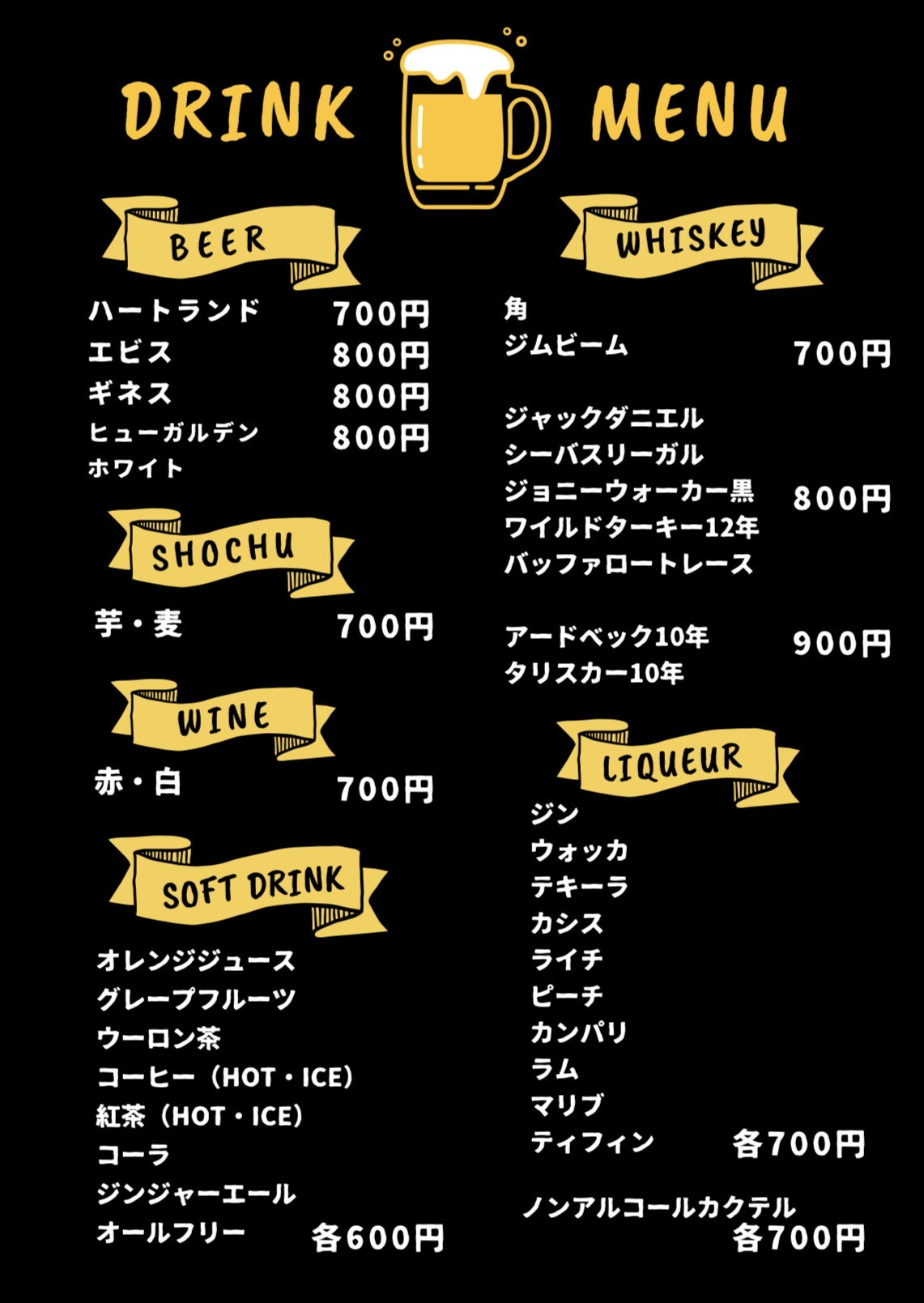 演奏希望:1800円+2drink order